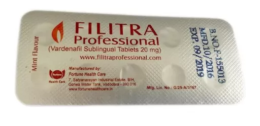 - Filitra Professional 20mg es un medicamento comúnmente utilizado para tratar la disfunción eréctil (ED) en los hombres. Algunas de las ventajas de utilizar Filitra Professional 20mg incluyen: