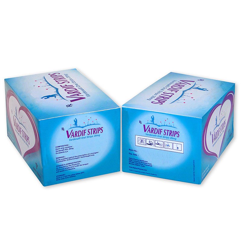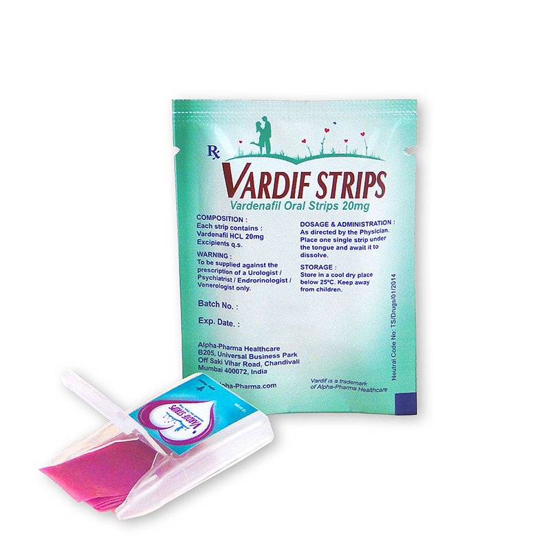 Vardif Oral Strips 20mg usa como compuesto activo el Vardenafil que funciona como inhibidor de fosfodiesterasa, de igual manera que muchos otros medicamentos para la disfunción eréctil.
